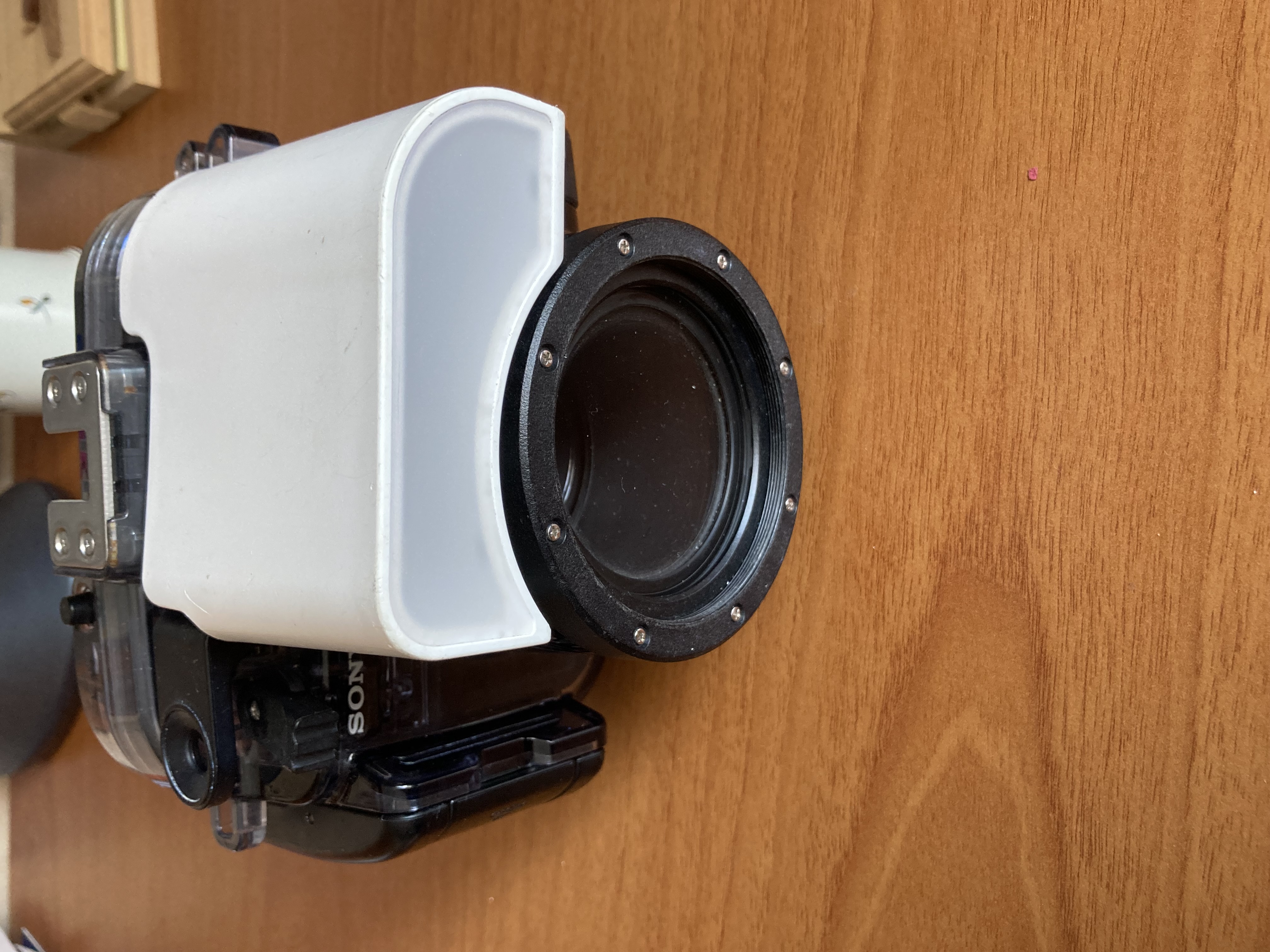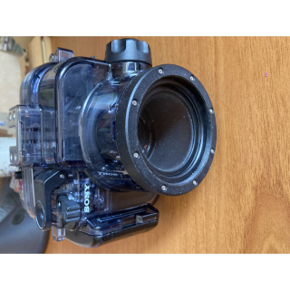 Le caisson est équipé d'une bague de 67mm qui permet de rajouter des lentilles macro ou un flash annulaire, il est étanche jusqu’à 40m, c est suffisant pour la plupart des plongées.